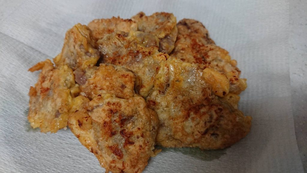 お肉から出る油はペーパーで取り除いたほうがよかったかな。