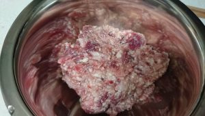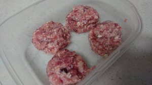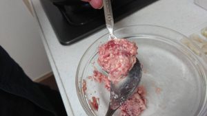 今回は、合いびき肉にかわり、猪の挽肉と鶏ミンチのブレンドを使いました。
