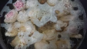 お肉(全体量)300gに対して、マイタケ1パックを使ったけれど、